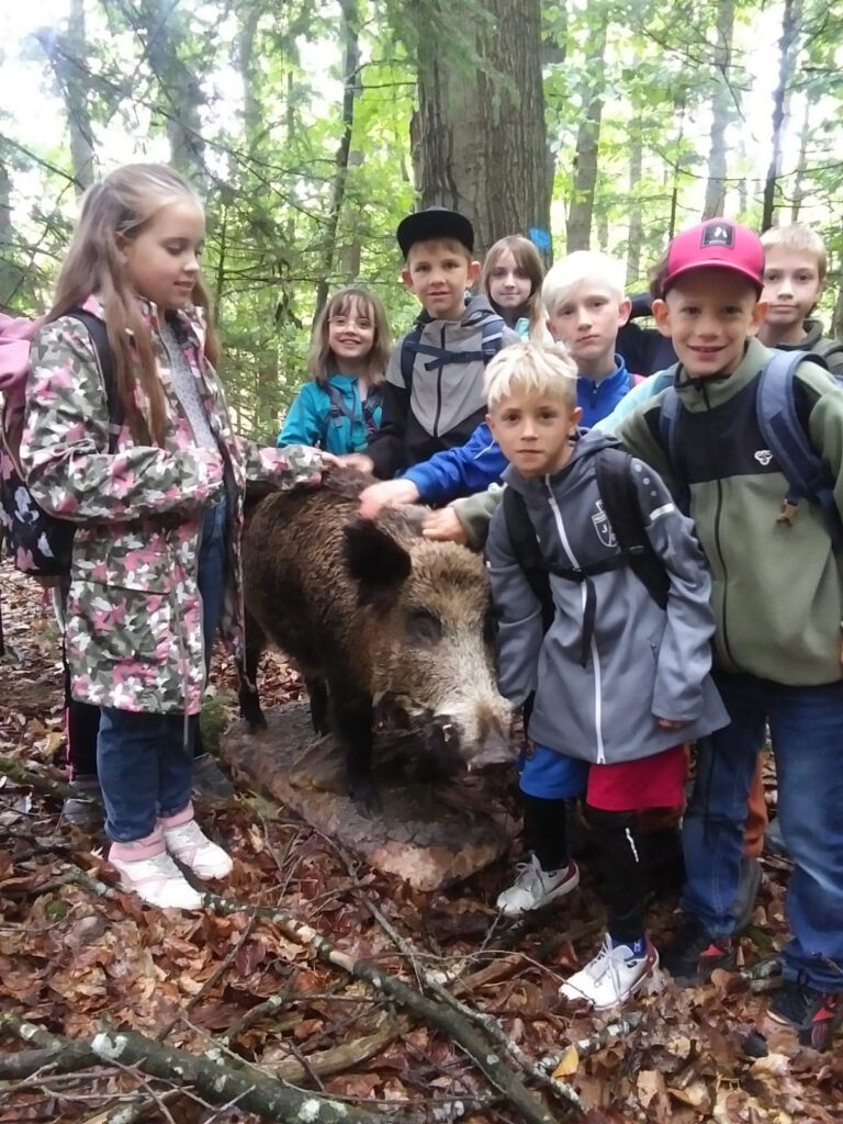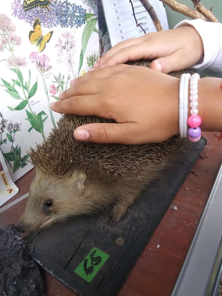 Neugierig erforschten die Schülerinnen und Schüler Pflanzen, Bäume und Tiere und erfuhren dabei viel Spannendes über das Leben im Wald. Besonders aufregend war es, einige Tiere aus dem Wald sogar aus nächster Nähe betrachten und anfassen zu dürfen.