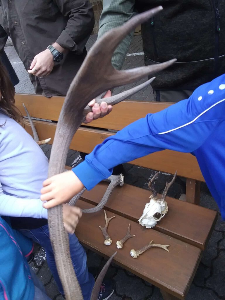 Zum Abschluss dieses lehrreichen und schönen Vormittags bekam jedes Kind eine selbstgebastelte Halskette aus Geweihteilen als Erinnerung an den Tag im Wald.
